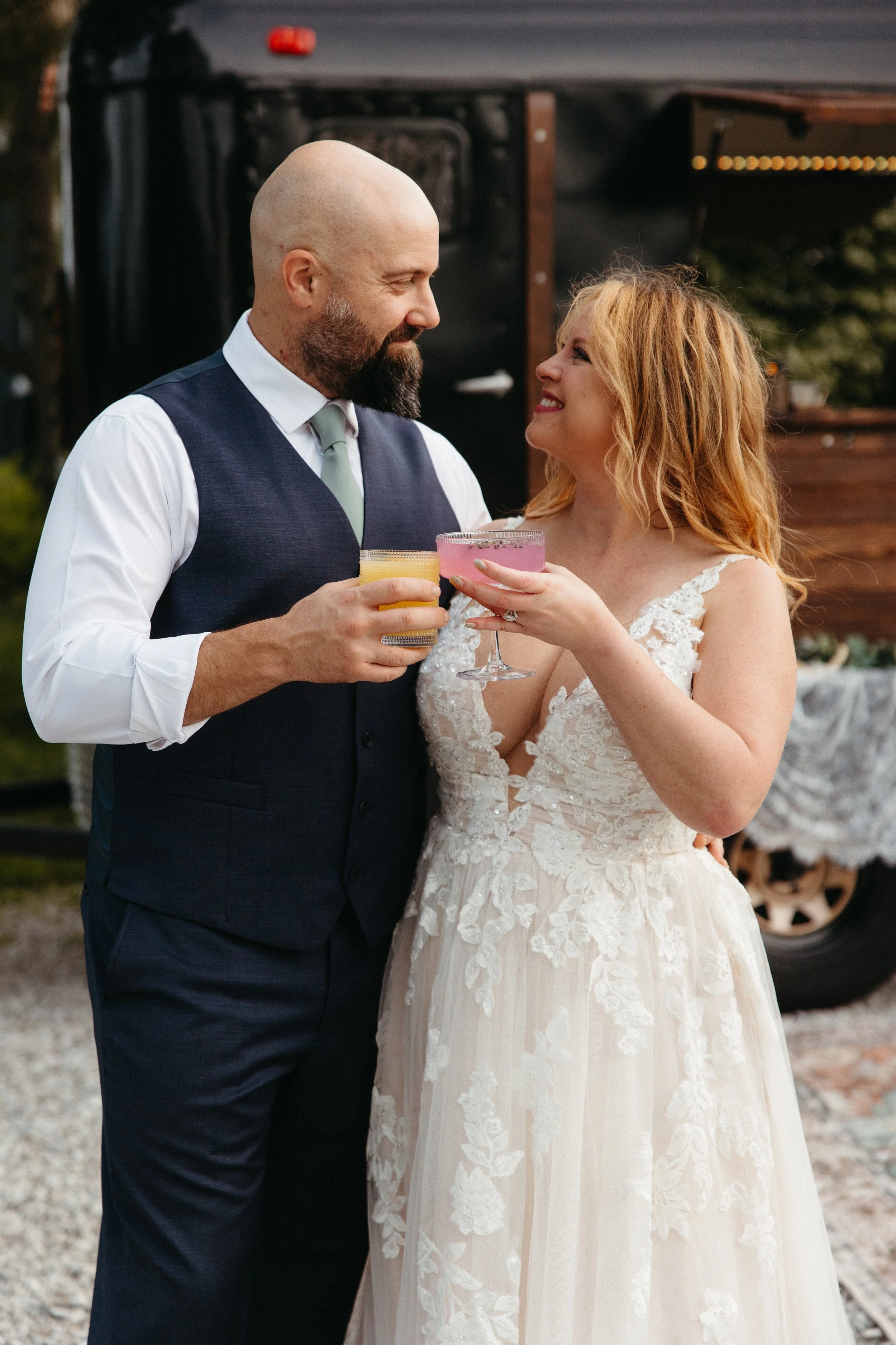 A: We love helping our couples and hosts create signature cocktails that reflect their personalities or event theme! We will chat about favorite flavors, a play on your love story, something seasonal, or even something tied to a memory to design drinks that your guests will remember!